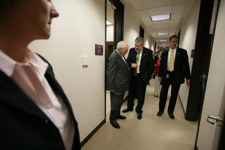 View Original:Vice_President_Cheney_Talks_with_David_Addington_in_Hallway_at_FBI_Headquarters.jpg (4992x3328)