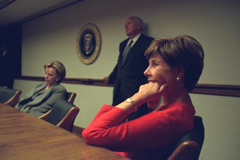 View Original:Vice_President_Cheney_with_Laura_Bush_and_Lynne_Cheney_in_the_President's_Emergency_Operations_Center_(PEOC).jpg (3072x2048)