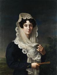 | Keywords: Vicente Lopez Dona Gertrudis de Compte y de Bruga.jpg Doña Gertrudis de Compte y de Bruga Witwe des Sarda Molins c 1829-1832 Oil on canvas cm 93 70 unknown http //www hampel-auctions com/ PD-old-100 other versions Female portrait paintings by Vicente López Portaña 19th-century portrait paintings location missing 1829> 1830s paintings from Spain 1830s portrait paintings F 19th-century oil portraits of standing women at half length 1829> 19th-century women of Spain 1829> Images from Hampel Auctions Lace in art 1829> Mantilla in art Portrait paintings of widows in mourning 1829> Portrait paintings of women of Spain in national costumes Portraits with fans 1829> |