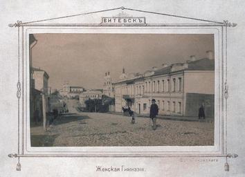 Keywords: Viciebsk, Vialikaja-Duchaŭskaja. Віцебск, Вялікая-Духаўская (S. Jurkoŭski, XIX).jpg Віцебск Viciebsk ог вуліц Вялікай vulica Vialikaja і Духаўскай vulica Duchaŭskaja Жаночая гімназія Віцебскі абласны к аязнаўчы музэй<br>Уладзіме Булаўскі Таямніцы Віцебска S Jurkoŭski century 19 PD-old-100 History of Vitebsk Photos of Viciebsk by Sihizmund Jurkoŭski History of Lienina Street Viciebsk Mariinsky Women's Gymnasium in Viciebsk |