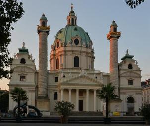 Keywords: vienna st charles's church baroque charles square austria baroque cathedral dom church dome downtown historically morgenstimmung morning light morning johann bernhard fischer von erlach