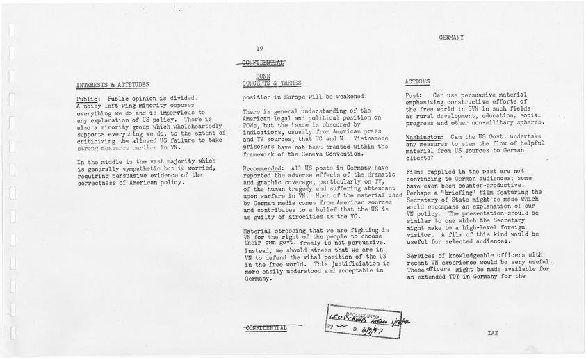 | Keywords: Vietnam and World Opinion, p. 24 of 118 - NARA - 304226.tif Scope and content General notes 304226 Local identifier U S Information Agency Office of Research and Media Reaction ca 1996 - 10/01/1999 Most Recent <br/> U S Information Agency Office of Research 10/31/1973 - 03/27/1978 Predecessor <br/> U S Information Agency Office of Research and Evaluation 11/19/1953 - 04/30/1954 Predecessor <br/> U S Information Agency Office of Research 1982 - 1999 Predecessor National Archives at College Park - Textual Reference Civilian RD-DC-2-CIV National Archives at College Park 8601 Adelphi Road College Park MD 20740-6001 date 1966 Record group Record Group 306 Records of the U S Information Agency 1900 - 2003 Record group ARC 622 Special Reports compiled 1953 - 1997 Series ARC 1098728 File unit File unit ARC Variant control numbers NAIL Control Number NWCTC-306-SREPS-1966S 15 NAIL Control Number NWDT2-306-SREPS-1966S 15 yes Other versions <gallery> File Vietnam and World Opinion p 1 of 118 - NARA - 304226 tif This page as TIFF File Vietnam and World Opinion p 1 of 118 - NARA - 304226 jpg This page as JPG </gallery> Other pages <gallery> File Vietnam and World Opinion p 1 of 118 - NARA - 304226 tif page 1 TIFF File Vietnam and World Opinion p 2 of 118 - NARA - 304226 tif page 2 TIFF File Vietnam and World Opinion p 3 of 118 - NARA - 304226 tif page 3 TIFF File Vietnam and World Opinion p 4 of 118 - NARA - 304226 tif page 4 TIFF File Vietnam and World Opinion p 5 of 118 - NARA - 304226 tif page 5 TIFF File Vietnam and World Opinion p 6 of 118 - NARA - 304226 tif page 6 TIFF File Vietnam and World Opinion p 7 of 118 - NARA - 304226 tif page 7 TIFF File Vietnam and World Opinion p 8 of 118 - NARA - 304226 tif page 8 TIFF File Vietnam and World Opinion p 9 of 118 - NARA - 304226 tif page 9 TIFF File Vietnam and World Opinion p 10 of 118 - NARA - 304226 tif page 10 TIFF File Vietnam and World Opinion p 11 of 118 - NARA - 304226 tif page 11 TIFF File Vietnam and World Opinion p 12 of 118 - NARA - 304226 tif page 12 TIFF File Vietnam and World Opinion p 13 of 118 - NARA - 304226 tif page 13 TIFF File Vietnam and World Opinion p 14 of 118 - NARA - 304226 tif page 14 TIFF File Vietnam and World Opinion p 15 of 118 - NARA - 304226 tif page 15 TIFF File Vietnam and World Opinion p 16 of 118 - NARA - 304226 tif page 16 TIFF File Vietnam and World Opinion p 17 of 118 - NARA - 304226 tif page 17 TIFF File Vietnam and World Opinion p 18 of 118 - NARA - 304226 tif page 18 TIFF File Vietnam and World Opinion p 19 of 118 - NARA - 304226 tif page 19 TIFF File Vietnam and World Opinion p 20 of 118 - NARA - 304226 tif page 20 TIFF File Vietnam and World Opinion p 21 of 118 - NARA - 304226 tif page 21 TIFF File Vietnam and World Opinion p 22 of 118 - NARA - 304226 tif page 22 TIFF File Vietnam and World Opinion p 23 of 118 - NARA - 304226 tif page 23 TIFF File Vietnam and World Opinion p 24 of 118 - NARA - 304226 tif page 24 TIFF File Vietnam and World Opinion p 25 of 118 - NARA - 304226 tif page 25 TIFF File Vietnam and World Opinion p 26 of 118 - NARA - 304226 tif page 26 TIFF File Vietnam and World Opinion p 27 of 118 - NARA - 304226 tif page 27 TIFF File Vietnam and World Opinion p 28 of 118 - NARA - 304226 tif page 28 TIFF File Vietnam and World Opinion p 29 of 118 - NARA - 304226 tif page 29 TIFF File Vietnam and World Opinion p 30 of 118 - NARA - 304226 tif page 30 TIFF File Vietnam and World Opinion p 31 of 118 - NARA - 304226 tif page 31 TIFF File Vietnam and World Opinion p 32 of 118 - NARA - 304226 tif page 32 TIFF File Vietnam and World Opinion p 33 of 118 - NARA - 304226 tif page 33 TIFF File Vietnam and World Opinion p 34 of 118 - NARA - 304226 tif page 34 TIFF File Vietnam and World Opinion p 35 of 118 - NARA - 304226 tif page 35 TIFF File Vietnam and World Opinion p 36 of 118 - NARA - 304226 tif page 36 TIFF File Vietnam and World Opinion p 37 of 118 - NARA - 304226 tif page 37 TIFF File Vietnam and World Opinion p 38 of 118 - NARA - 304226 tif page 38 TIFF File Vietnam and World Opinion p 39 of 118 - NARA - 304226 tif page 39 TIFF File Vietnam and World Opinion p 40 of 118 - NARA - 304226 tif page 40 TIFF File Vietnam and World Opinion p 41 of 118 - NARA - 304226 tif page 41 TIFF File Vietnam and World Opinion p 42 of 118 - NARA - 304226 tif page 42 TIFF File Vietnam and World Opinion p 43 of 118 - NARA - 304226 tif page 43 TIFF File Vietnam and World Opinion p 44 of 118 - NARA - 304226 tif page 44 TIFF File Vietnam and World Opinion p 45 of 118 - NARA - 304226 tif page 45 TIFF File Vietnam and World Opinion p 46 of 118 - NARA - 304226 tif page 46 TIFF File Vietnam and World Opinion p 47 of 118 - NARA - 304226 tif page 47 TIFF File Vietnam and World Opinion p 48 of 118 - NARA - 304226 tif page 48 TIFF File Vietnam and World Opinion p 49 of 118 - NARA - 304226 tif page 49 TIFF File Vietnam and World Opinion p 50 of 118 - NARA - 304226 tif page 50 TIFF File Vietnam and World Opinion p 51 of 118 - NARA - 304226 tif page 51 TIFF File Vietnam and World Opinion p 52 of 118 - NARA - 304226 tif page 52 TIFF File Vietnam and World Opinion p 53 of 118 - NARA - 304226 tif page 53 TIFF File Vietnam and World Opinion p 54 of 118 - NARA - 304226 tif page 54 TIFF File Vietnam and World Opinion p 55 of 118 - NARA - 304226 tif page 55 TIFF File Vietnam and World Opinion p 56 of 118 - NARA - 304226 tif page 56 TIFF File Vietnam and World Opinion p 57 of 118 - NARA - 304226 tif page 57 TIFF File Vietnam and World Opinion p 58 of 118 - NARA - 304226 tif page 58 TIFF File Vietnam and World Opinion p 59 of 118 - NARA - 304226 tif page 59 TIFF File Vietnam and World Opinion p 60 of 118 - NARA - 304226 tif page 60 TIFF File Vietnam and World Opinion p 61 of 118 - NARA - 304226 tif page 61 TIFF File Vietnam and World Opinion p 62 of 118 - NARA - 304226 tif page 62 TIFF File Vietnam and World Opinion p 63 of 118 - NARA - 304226 tif page 63 TIFF File Vietnam and World Opinion p 64 of 118 - NARA - 304226 tif page 64 TI
