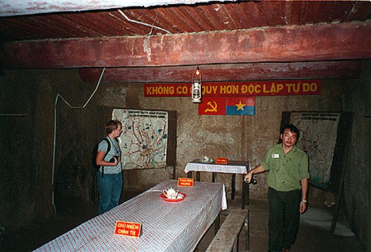 Keywords: VietnamCuChiTunnelsCommand.jpg Kevyn A command center in the Cu Chi Tunnels in Viet Nam The tunnels today are a popular tourist attraction and visitors can enjoy a simple meal in the complex Photo date 20-OCT-1997 Photo taken by Wikimedia Commons user Kevyn Jacobs released into the public domain Cu Chi Tunnel Operations rooms |