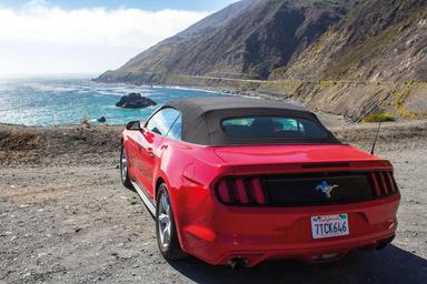 Keywords: view drive west coast california ford mustang red car convertible coastal natural
