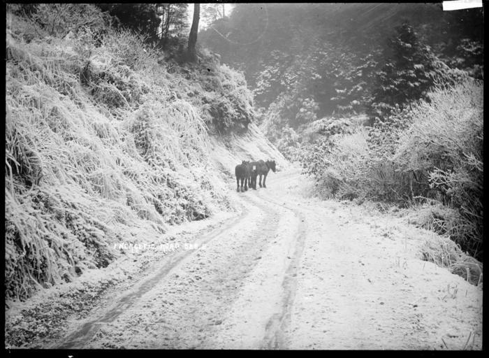 Keywords: blackandwhite monochrome photo border texture outdoor water waterfall landscape abstract wave black and white View of Energetic Road, probably leading to the Energetic Mine near Inangahua and Reefton. A man is standing with two horses in a bend of the road. Photograph taken by William Archer Price Inscriptions: Inscribed - Photographer's title on negative -bottom left: Energetic Road. [No.] 525.E. Quantity: 1 b&w original negative(s). Physical Description: Dry plate glass negative 4.5 x 6.5 inches View of Energetic Road, near Inangahua. Price, William Archer, 1866-1948 :Collection of post card negatives. Ref: 1/2-001893-G. Alexander Turnbull Library, Wellington, New Zealand. natlib.govt.nz/records/22773741 View of Energetic Road, probably leading to the Energetic Mine near Inangahua and Reefton. A man is standing with two horses in a bend of the road. Photograph taken by William Archer Price Inscriptions: Inscribed - Photographer's title on negative -bottom left: Energetic Road. [No.] 525.E. Quantity: 1 b&w original negative(s). Physical Description: Dry plate glass negative 4.5 x 6.5 inches View of Energetic Road, near Inangahua. Price, William Archer, 1866-1948 :Collection of post card negatives. Ref: 1/2-001893-G. Alexander Turnbull Library, Wellington, New Zealand. natlib.govt.nz/records/22773741 |