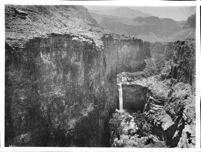 Keywords: View from above towards Mooney Falls in Havasu Canyon, Grand Canyon, ca.1899 (CHS-3841).jpg en <br> View from above towards Mooney Falls in Havasu Canyon Grand Canyon ca 1899 Photograph of the view from above towards Mooney Falls in Havasu Canyon Grand Canyon ca 1899 The falls spills out in a narrow ribbon flowing towards the river visible through vegetation on the canyon floor far below Nearly vertical rocky walls hem the falls in The canyon rim is visible in the distant background Call number CHS-3841 Photographer James George Wharton Filename CHS-3841 Coverage date circa 1899 Part of collection California Historical Society Collection 1860-1960 Format glass plate negatives Type images Part of subcollection Title Insurance and Trust and C C Pierce Photography Collection 1860-1960 Repository name USC Libraries Special Collections Accession number 3841 Microfiche number 1-91-235 Archival file chs_Volume95/CHS-3841 tiff Repository address Doheny Memorial Library Los Angeles CA 90089-0189 Geographic subject country USA Format aacr2 2 photographs glass photonegative photoprint b w ; 17 x 22 cm Rights Digitally reproduced by the USC Digital Library; From the California Historical Society Collection at the University of Southern California Subject adlf canyons Repository email specol usc edu Contributing entity California Historical Society Date created circa 1899 Publisher of the digital version University of Southern California Libraries Format aat photographic prints; photographs Geographic subject state Arizona Legacy record ID chs-m16417; USC-1-1-1-14264 Geographic subject canyons Havasu Canyon; canyons Grand Canyon Access conditions Send requests to address or e-mail given Phone 213 821-2366; fax 213 740-2343 Subject file heading Natural features -- Parks -- Grand Canyon -- Mooney Falls Subject lcsh Parks; Canyons; Waterfalls circa 1899 date created James George Wharton http //digitallibrary usc edu/cdm/ref/collection/p15799coll65/id/16356 PD-old-70-1923 Images from USC Digital Library uploaded by Fæ California Historical Society Collection 1860-1960 Glass plate negatives Photographs by George Wharton James |