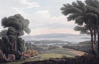 | Keywords: View from Holman (JW Edy plate 48).jpg  Artwork Creator John William Edy en View from Holman No XLVIII VIEW FROM HOLMAN The spot where this view was taken is called Holman situated on the road from Oslo Christiania to Bogstad in a vast valley flanked by a noble amphitheatre of woody mountains one of which has on its summit a spacious lake In the picture looking over some cultivated land is seen the farm-house which gives name to the place From it the vale gradually descends to the margin of Oslofjord Christiania Fiord Here a small island or isthmus presents itself on which the summer residences of the Governor and Commandant are seen The houses are ample and convenient particularly that of the former who has also employed much skill and labour in laying out the gardens and in planting all that would grow on so sterile a soil its base being the schistus niger or black slate which is seen on the walks At the end of one avenue is an obelisk inscribed to the memory of a departed friend a species of decoration which is very general in the gardens of the nobility and gentry of Norway and Denmark the view includes a vast extent of the Fiord stretching on the right side nearly to the town of Drøbak Drobak a course which the ships take on their voyage to and from Christiania situated on this shore to the left above the Crown Islands The hills on the left in the extreme distance are at the bottom of a beautiful and extensive bay near Ås Aas which is navigable for ships and where some cargoes are collected The hills on each side are covered with trees to the water's edge; this is also the case on the middle land but its interior is more occupied by farms and cultivated grounds The hills and rocks are of no great altitude on the shores of the Fiord except near Christiania and Drobak The scenery about Holman in feature and colouring much resembles that of of this beautiful region it may be added that General Peder Anker selected it as the site of a splendid mansion which his refined taste and excellent judgment have made the seat of the muses The house with its portico has the air of a Roman villa within the spacious rooms are seen many fine Italian pictures and prints ; among the latter I observed a choice set of Hogarth's works Books philosophical and musical instruments with other aids to science complete the range of intellectual resources in this elegant retreat The gardens are tastefully laid out in the English style; the shrubberies are planted with specimens of every species of tree and shrub indigenous to Norway Near the lake is erected an exact model of an ancient Norwegian dwelling on the sides of its large room are inscribed several hundred names each with its date and address of former visitors to Bogstad ; among them are the names of kings princes dukes lords ladies and of many scientific and eminent persons of both sexes written in pencil with their own hands On adding my own I perceived that of Mary Wollstonecraft Mary Wolstencraft not very distant This mansion is situated in the bosom of the amphitheatre of hills at the head of the valley mentioned above and is distant 12 English miles from Christiania The lofty mountainous scenery around being covered with the evergreen firs presents the most romantic and beautiful views imaginable Collapse bottom http //urn nb no/URN NBN no-nb_digibok_2011072910001 Boydell's picturesque scenery of Norway London 1820 Plate no 48 p 265 in scanned copy PD-Art-100 John William Edy Boydell's picturesque scenery of Norway Holmen Oslo Historical images of Oslofjorden |