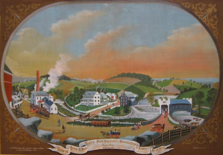 Keywords: View of Henry Z. Van Reed's Farm, Paper Mill, and Surroundings in Lower Heidelberg, Pennsylvania.JPG View of Henry Z Van Reed's Farm Paper Mill and Surroundings in Lower Heidelberg Pennsylvania by Charles C Hofmann oil on canvas 1872 own 1872 Charles C Hofmann PD-old-100 Farms in Pennsylvania Berks County Pennsylvania Charles C Hofmann |