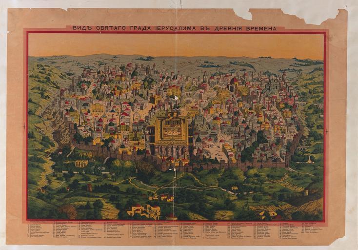| Keywords: View of the Holy city of Jerusalem in ancient times - Lit. I.D. Sytin.jpg מפה ש ירוש י http //web nli org il/sites/NLI/Hebrew/digitallibrary/Laor-Collection/Pages/maps aspx en View of the Holy city of Jerusalem in ancient times Drawn after Eltzner Index in Russian Moscow Sytin 1894 he מפת ירוש י ברוסית בעקבות א צנר מוסקבה סיטין 1894 Dimensions 484x758 mm http //web nli org il/sites/NLI/Hebrew/digitallibrary/pages/viewer aspx presentorid NLI_MAPS_JER DocID NNL_MAPS_JER002369668 Click to enlarge http //web nli org il/sites/NLIS/en/Maps The Eran Laor Cartographic Collection National Library of Israel 2015-12-09 12 05 14 http //web nli org il/sites/NLI/English/Pages/default aspx The National Library of Israel PD-old Old maps of Jerusalem GLAM National Library of Israel Laor collection |