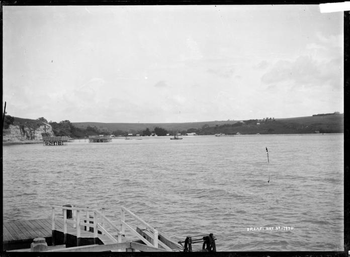 Keywords: blackandwhite monochrome photo border outdoor landscape sky coast shore black and white View of Orakei Bay (now known as Okahu Bay) looking south. In the immediate foreground is Orakei wharf. The newly-laid sewer pipe can be seen running along the beachfront at what is now Tamaki Drive. Conspio House can be seen in the distance on the hill to the right. Taken by William A Price ca 1910. Inscriptions: Inscribed - Photographer's title on negative -bottom right: Orakei Bay. No 1797D. William Archer Price lived and practised in Queen Street, Northcote, 1909-1910. Source: New Zealand Post Office directories Quantity: 1 b&w original negative(s). Physical Description: Dry plate glass negative 4.5 x 6.5 inches View of Orakei Bay, Auckland. Price, William Archer, 1866-1948 :Collection of post card negatives. Ref: 1/2-000775-G. Alexander Turnbull Library, Wellington, New Zealand. natlib.govt.nz/records/23126064 View of Orakei Bay (now known as Okahu Bay) looking south. In the immediate foreground is Orakei wharf. The newly-laid sewer pipe can be seen running along the beachfront at what is now Tamaki Drive. Conspio House can be seen in the distance on the hill to the right. Taken by William A Price ca 1910. Inscriptions: Inscribed - Photographer's title on negative -bottom right: Orakei Bay. No 1797D. William Archer Price lived and practised in Queen Street, Northcote, 1909-1910. Source: New Zealand Post Office directories Quantity: 1 b&w original negative(s). Physical Description: Dry plate glass negative 4.5 x 6.5 inches View of Orakei Bay, Auckland. Price, William Archer, 1866-1948 :Collection of post card negatives. Ref: 1/2-000775-G. Alexander Turnbull Library, Wellington, New Zealand. natlib.govt.nz/records/23126064 |
