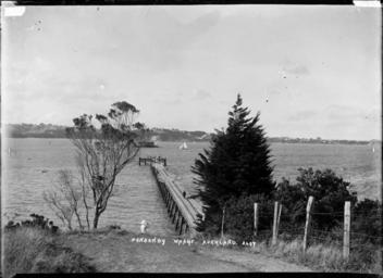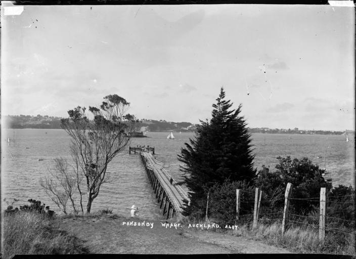 Keywords: blackandwhite monochrome outdoor photo border black and white View of Ponsonby Wharf taken from a vantage point looking down and along the wharf with Watchman Island in the middle distance and the North Shore on the horizon. A woman in a large white hat is sitting in the foreground looking down at people on the wharf and the yachts in the Waitemata Harbour. Photograph taken by William A Price in early 1900s. Inscriptions: Inscribed - Photographer's title on negative -bottom centre: Ponsonby Wharf. Auckland. 2407.. The Post Office was built in 1912. Quantity: 1 b&w original negative(s). Physical Description: Dry plate glass negative 4.5 x 6.5 inches View of Ponsonby Wharf looking towards the North Shore. Price, William Archer, 1866-1948 :Collection of post card negatives. Ref: 1/2-001177-G. Alexander Turnbull Library, Wellington, New Zealand. natlib.govt.nz/records/22694486 View of Ponsonby Wharf taken from a vantage point looking down and along the wharf with Watchman Island in the middle distance and the North Shore on the horizon. A woman in a large white hat is sitting in the foreground looking down at people on the wharf and the yachts in the Waitemata Harbour. Photograph taken by William A Price in early 1900s. Inscriptions: Inscribed - Photographer's title on negative -bottom centre: Ponsonby Wharf. Auckland. 2407.. The Post Office was built in 1912. Quantity: 1 b&w original negative(s). Physical Description: Dry plate glass negative 4.5 x 6.5 inches View of Ponsonby Wharf looking towards the North Shore. Price, William Archer, 1866-1948 :Collection of post card negatives. Ref: 1/2-001177-G. Alexander Turnbull Library, Wellington, New Zealand. natlib.govt.nz/records/22694486 |