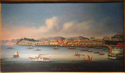 | Keywords: View of Praia Grande, Macau, unknown artist, probably Macau, mid 1800s, oil on canvas - Museu do Oriente - Lisbon, Portugal - DSC06832.JPG en Exhibit in the Museu do Oriente - Lisbon Portugal This work is old enough so that it is in the public domain Photography was permitted in the museum without restriction 2014-10-05 own Daderot other versions cc-zero Uploaded with UploadWizard Paintings from China in the Museu do Oriente Historical images of Macau | ||||