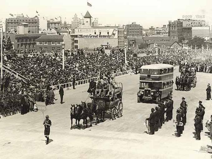 MAKE A MEME View Large Image Many other photos in our collection are available to view and browse on our website using Photo Investigator. Title: View of Procession (old and new Buses) Dated: 19/03/1932 Digital ID: 12685_a007_a00704_8734000128r Rights: ...