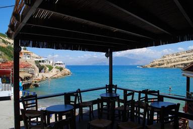Keywords: view terrace tavern sea matala crete greek island holiday rock