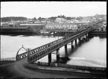Keywords: blackandwhite bridge monochrome architecture building building structure infrastructure steel arch bridge water pier arch outdoor trestle photo border black and white View of Wanganui across the Whanganui River. Cobham Bridge is in the foreground, with the business premises of M. Hogan & Company Ltd., H.I. Jones & Sons Ltd., and the Wanganui branch of the New Zealand Loan & Mercantile Agency Company, on the far side of the river. Photograph taken by William Archer Price. Inscriptions: Inscribed - Photographer's title on negative -bottom right: Wanganui. [No.] 109.A. Quantity: 1 b&w original negative(s). Physical Description: Dry plate glass negative View of Wanganui with Town Bridge stretching across the Whanganui River in the foreground. Price, William Archer, 1866-1948 :Collection of post card negatives. Ref: 1/2-001278-G. Alexander Turnbull Library, Wellington, New Zealand. natlib.govt.nz/records/23187310 View of Wanganui across the Whanganui River. Cobham Bridge is in the foreground, with the business premises of M. Hogan & Company Ltd., H.I. Jones & Sons Ltd., and the Wanganui branch of the New Zealand Loan & Mercantile Agency Company, on the far side of the river. Photograph taken by William Archer Price. Inscriptions: Inscribed - Photographer's title on negative -bottom right: Wanganui. [No.] 109.A. Quantity: 1 b&w original negative(s). Physical Description: Dry plate glass negative View of Wanganui with Town Bridge stretching across the Whanganui River in the foreground. Price, William Archer, 1866-1948 :Collection of post card negatives. Ref: 1/2-001278-G. Alexander Turnbull Library, Wellington, New Zealand. natlib.govt.nz/records/23187310 |