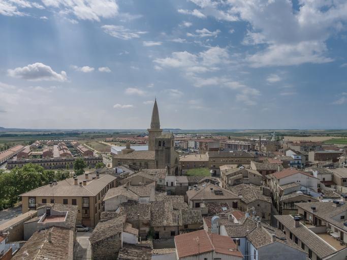 Keywords: views people horizon sky infinity landscape aerial view bell tower roofs clouds spain sunset field church architecture