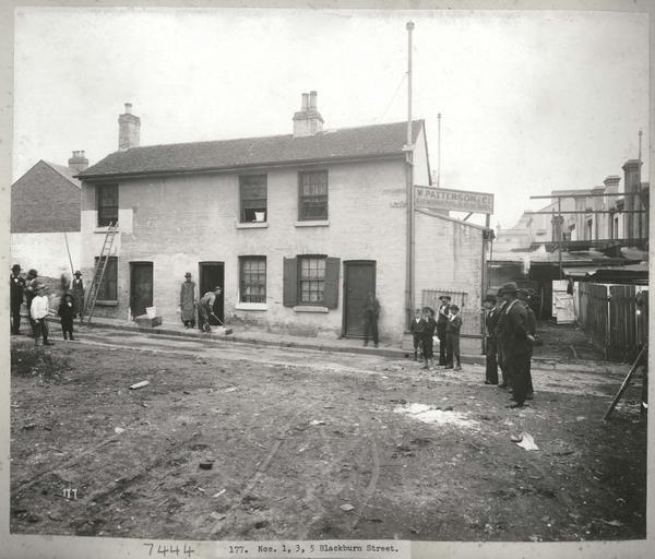 | Keywords: archives state records nsw staterecordsnsw newsouthwales blackandwhite the rocks therocks plague john degotardi jr. johndegotardijr architecture building outdoor photo border black and white Title: Views taken during Cleansing Operations, Quarantine Area, Sydney, 1900, Vol. III, under the supervision of Mr George McCredie, F.I.A., N.S.W. The photographs were taken by Mr. John Degotardi, Jr., photographer from the Department of Public Works. No.'s 1-5 Blackburn Street, Sydney (NSW) Dated: c. 17/07/1900 Digital ID: 12487_a021_a021000046 Series: NRS 12487 Photographs taken during cleansing operations in quarantine areas, Sydney Rights: No known copyright restrictions www.records.nsw.gov.au/about-us/rights-and-permissions We'd love to hear from you if you use our photos/documents. Many other photos in our collection are available to view and browse on our website using Photo Investigator. Title: Views taken during Cleansing Operations, Quarantine Area, Sydney, 1900, Vol. III, under the supervision of Mr George McCredie, F.I.A., N.S.W. The photographs were taken by Mr. John Degotardi, Jr., photographer from the Department of Public Works. No.'s 1-5 Blackburn Street, Sydney (NSW) Dated: c. 17/07/1900 Digital ID: 12487_a021_a021000046 Series: NRS 12487 Photographs taken during cleansing operations in quarantine areas, Sydney Rights: No known copyright restrictions www.records.nsw.gov.au/about-us/rights-and-permissions We'd love to hear from you if you use our photos/documents. Many other photos in our collection are available to view and browse on our website using Photo Investigator. |