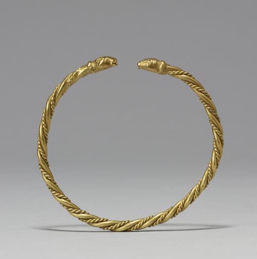 | Keywords: Viking - Arm Ring - Walters 57466.jpg Together with its mate Walters 57 467 this bracelet has stylized animal-head terminals much like those found on jewelry made by Germanic peoples to the south Arm rings or armlets made by twisting thick and thin rods of gold or silver were common during the Viking period when wealth was literally worn on one's sleeves Arm rings the portable savings accounts of the Vikings would be collected exchanged or hacked up to provide weighed amounts of gold to purchase goods century 9 11 Medieval gold cm 7 8 8 1 0 8 accession number 57 466 28073 Joseph Brummer Henry Walters Baltimore February 8 1927 by purchase Walters Art Museum 1931 by bequest Acquired by Henry Walters 1927 Early Christian and Byzantine Art Baltimore Museum of Art Baltimore 1947 place of origin southwest Russia Walters Art Museum license Medieval metalwork in the Walters Art Museum Jewellery in the Walters Art Museum Viking jewellery Media contributed by the Walters Art Museum needs category review Armlets |