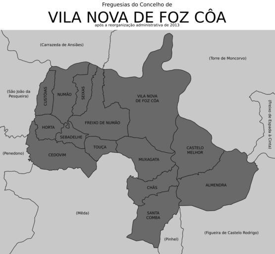 | Keywords: Vila Nova de Foz Côa freguesias 2013.svg pt Freguesias do concelho de Vila Nova de Foz Côa Fontes Diário da República Reorganização administrativa do território das freguesias Lei n º 11-A/2013 de 28 de janeiro Direcção-Geral do Território Carta Administrativa Oficial de Portugal CAOP versão 2013 Continente http //www dgterritorio pt/ficheiros/cadastro/caop/caop_download/caop_2013_0/caop2013cont_zip_2 en Civil parishes in the municipality of Vila Nova de Foz Côa Portugal Sources Diário da República Administrative reorganization of the civil parishes' territory Law n 11-A/2013 from 28th January Direcção-Geral do Território Official Administrative Chart of Portugal CAOP version 2013 Mainland http //www dgterritorio pt/ficheiros/cadastro/caop/caop_download/caop_2013_0/caop2013cont_zip_2 2014-04-23 16 42 37 own Gazilion cc-zero Uploaded with UploadWizard Vila Nova de Foz Coa SVG maps of freguesias in Portugal |