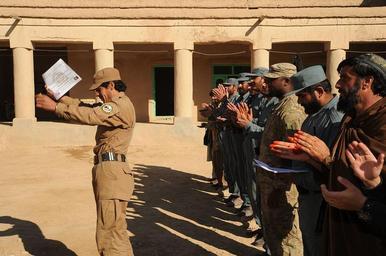 | Keywords: Village Veterinary Outreach Program-Afghanistan Local Police student graduation 111202-N-UD522-091.jpg en Afghan National Police instructors congratulate an Afghan Local Police recruit after receiving his graduation certificate in Gizab district Uruzgan province Dec 2 ANP instructors taught ALP recruits during a three week course on basic weapon handling improvised explosive device awareness and patrol movements 2011-12-02 Petty Officer 2nd Class David Brandenburg https //www dvidshub net/image/494364 111202-N-UD522-091 2011-12-03 09 08 GIZAB DISTRICT AF PD-USGov-Military-Navy Urozgan Province Afghan Local Police Images from DoD uploaded by Fæ |