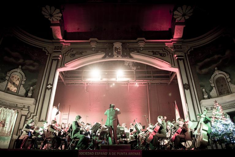 | Keywords: La ex sala del teatro Cervantes de Punta Arenas fue el lugar escogido para presentar el repertorio de Villancicos que prepararon los músicos de la Orquesta de Cuerdas del Conservatorio de Música de la Universidad de Magallanes junto al Coro Cantares de España, en el contexto de las celebraciones navideñas, bajo la dirección del maestro Ricardo Colima. La ex sala del teatro Cervantes de Punta Arenas fue el lugar escogido para presentar el repertorio de Villancicos que prepararon los músicos de la Orquesta de Cuerdas del Conservatorio de Música de la Universidad de Magallanes junto al Coro Cantares de España, en el contexto de las celebraciones navideñas, bajo la dirección del maestro Ricardo Colima. |