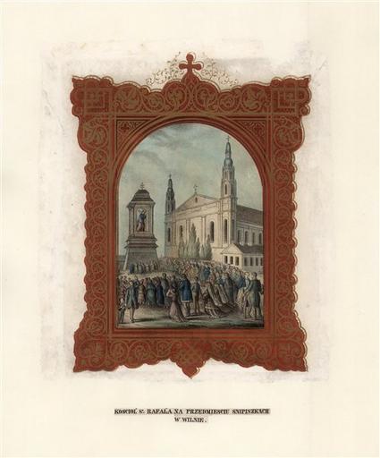 Keywords: Vilnia, Śnipiški. Вільня, Сьніпішкі (XIX).jpg Вільня Касьцёл Сьвятога Рафала Lietuvos dailės muziejus author century 19 PD-old Vilnius in art History of Vilnius Šnipiškės Church of St Raphael in Vilnius