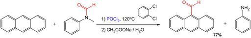 Keywords: Vilsmeier reaction example2.png Vilsmeier reaction Own 2008-05-26 zh User Puppy8800 Check categories 2008 October 31 zh wikipedia 三氯氧磷 Phosphoryl chloride Vilsmeier-Haack reaction