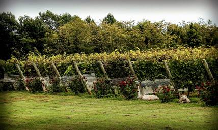 Keywords: vineyard bird netting protection wine vine harvest field rural winery deterrent roses bird row country farm growing protect industry countryside ripe leaf