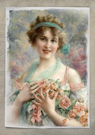 Keywords: vintage woman art collage roses floral vintage digital art digital art digital pink dress portrait adult lady people female style arts and crafts attractive pretty posing craft traditional history artistic lovely fashion decoupage