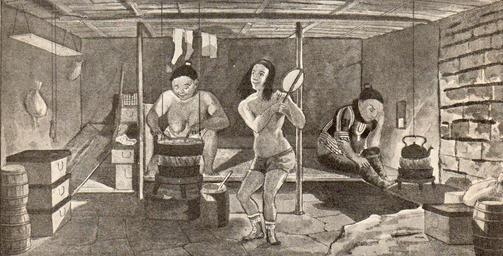 Keywords: Vinterhus.jpg Da Vinterhus i Grønland omkring 1830 opført af sten og tækket med græstørv Før og Nu Historisk topografisk tidsskrift og illustrationsværk 1919 redigeret af F Zachariae 1919 Stik af H G F Holm og J Holm hans far efter tegning af W A Graah på hans Undersøgelsesrejse til Grønland i Aarene 1828 - 31 PD-old H G F Holm History of Greenland Inuit clothing Fur clothing of Inuit people Fur fashion in 1830 |