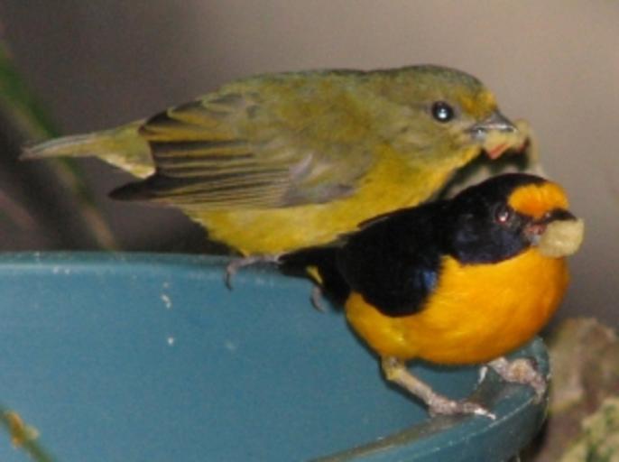 Keywords: Violaceous Euphonia.jpg Euphonia violacea Violaceous Euphonia Female Yellow Male Black Whith Yellow 2006-09-27 own assumed Ltshears Euphonia violacea Euphonia violacea in Louisville Zoo
