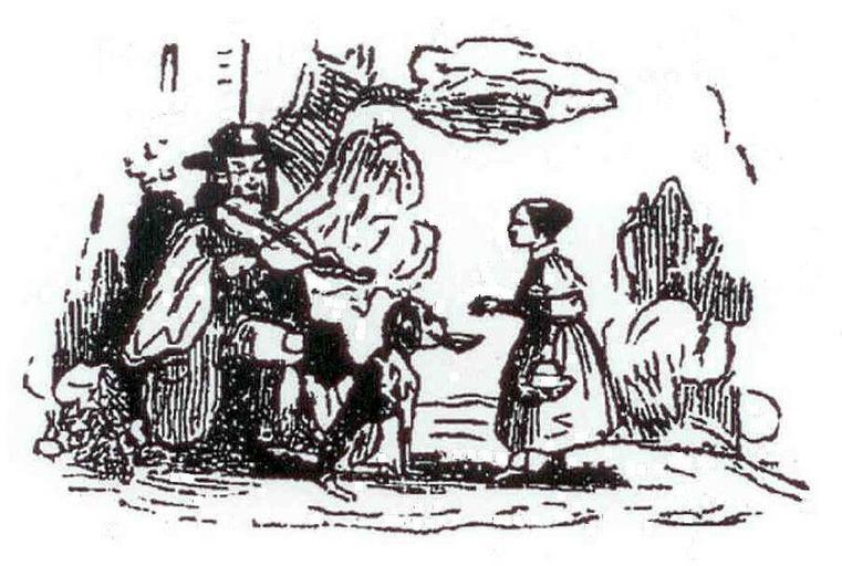 Keywords: Violoneux mendiant 1843 - 2.jpg fr Mendiant violoneux de Paris avec son chien 1843 L' écho des chansonniers français contenant un choix des meilleures chansons philosophiques bachiques et grivoises page 96 anonymous 1843 Domaine public Une moins bonne avec des taches PD-old Violone |