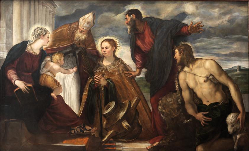 Keywords: Virgin with Child with Saint Catherine Augustin Marc and John the Baptist-Tintoretto-MBA Lyon A122-IMG 0309.jpg Artwork Creator Jacopo Tintoretto circa 1549 /1550 Institution Musée des Beaux-Arts de Lyon LangSwitch Paintings department Département des peintures object history LangSwitch Collection of the Ruler of Bavaria during the 18th century Collection de l'Electeur de Bavière au XVIIIème siècle credit line LangSwitch Sent by the French State 1805 Envoi de l'État 1805 LangSwitch Courtesy of Musée des beaux-arts de Lyon Avec l'aimable autorisation du Musée des beaux-arts de Lyon accession number A-122 Rama <br /> own PD-old-100 Musée des Beaux-Arts de Lyon 2011 - Supported by Wikimedia CH Religious paintings by Jacopo Tintoretto Renaissance paintings in the Musée des Beaux-Arts de Lyon Italian paintings in the Musée des Beaux-Arts de Lyon 16th-century paintings of Madonna and Child Paintings of Madonna and Child in France Portraits as Saint Catherine of Alexandria |