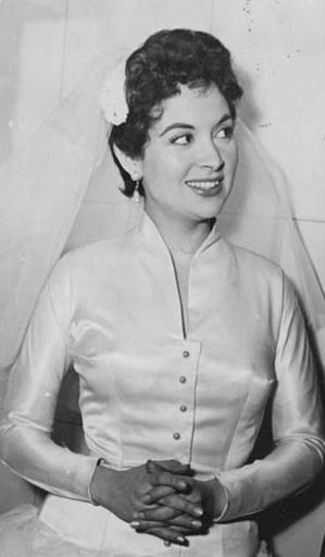 Keywords: Virginia Luque.jpg en Virginia Luque-actriz 1957 Museo del Cine Argentino 1957 No es necesario porque pasó a dominio público por el transcurso del tiempo PD-AR-Photo Virginia Luque Black and white photographic portraits of actresses Women facing left Fashion in 1957 Wedding dresses