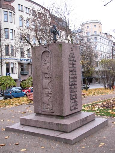 | Keywords: Vironkävijäin muistomerkki 2.JPG en Vironkävijäin muistomerkki in Vanha kirkkopuisto in Helsinki a monument for the memory of finnish volunteers who died in Estonian War of Independence fi Vironkävijäin muistomerkki Viron vapaussodassa kuolleiden suomalaisten vapaaehtoisten muistona Helsingin Vanhassa kirkkopuistossa own Sculpture by Into Saxelin 1883 - 1927 Photograph by MKFI 2009-11-01 100px 60 9 59 03 N 24 56 26 68 E region FI_heading E Finnish Volunteers Memorial Helsinki Taken with Canon PowerShot SX10 IS Files by User MKFI |
