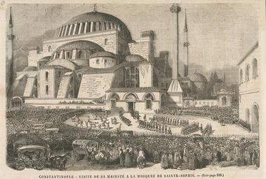 Keywords: Visit de sa majeste a la mosquee de Sainte-Sophie.jpg tr Ayasofya ziyareti century 19 http //maps turkishpostalhistory com/index php/Gravurlerim/clippings/IMG_0043 author Custom license marker 2013 07 15 PD-old-100 Uploaded with UploadWizard Rear view of Hagia Sophia Historical images of Hagia Sophia |