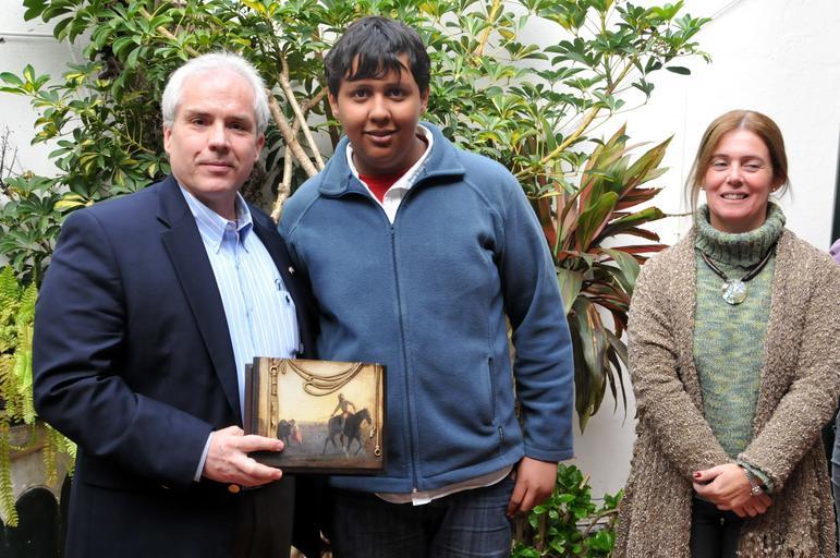 Keywords: cerro largo cerrolargo melo uruguay lloyd groupshot people outdoor La agenda de actividades en Melo del Encargado de Negocios de los EE.UU., Thomas Lloyd, incluyó una visita al centro de enseñanza de inglés Alianza Cultural Uruguay-Estados Unidos. En la foto, Lloyd recibe un obsequio por parte de uno de los alumnos. [U.S. Embassy photo by Vince Alongi / Copyright info] La agenda de actividades en Melo del Encargado de Negocios de los EE.UU., Thomas Lloyd, incluyó una visita al centro de enseñanza de inglés Alianza Cultural Uruguay-Estados Unidos. En la foto, Lloyd recibe un obsequio por parte de uno de los alumnos. [U.S. Embassy photo by Vince Alongi / Copyright info] |