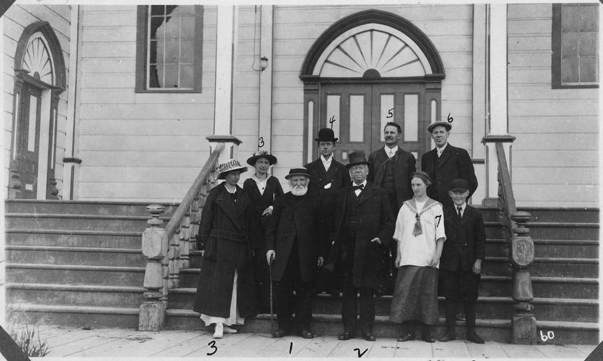 Keywords: "Visiters (to) Metlakahtla, B.C. - NARA - 297281.tif Scope and content Persons numbered in photograph 1 Rev Wm Duncan 2 Bishop Lukuk 3 Daughters of Bishop Lukuk 4 Rev H W Michener Ketchikan 5 Rev Blackwell Juneau 6 Mr O Williams Ketchikan 7 Dorothy Michener 8 Wayne Michener General notes 297281 Local identifier Wellcome Henry S Henry Solomon Sir 1853-1936 NARA's Pacific Alaska Region Anchorage NRIAA 654 West Third Avenue Anchorage AK 99501-2145 Record group Collection WME Sir Henry Wellcome Collection 1856 - 1936 Record group ARC 1208 Photographs of the Inhabitants of Metlakatla British Columbia and Metlakatla Alaska compiled ca 1856 - 1936 Series ARC 297169 File unit File unit ARC Variant control numbers NAIL Control Number NRIA-WME-PHOTOS-P24<br /> Other Identifier Box 275 yes Other versions <gallery> File Visiters_ to _Metlakahtla _B C _-_NARA_-_297281 tif tif File Visiters_ to _Metlakahtla _B C _-_NARA_-_297281 jpg jpg </gallery> NARA-cooperation PD-USGov NARA TIF images with categorized JPGs William Duncan missionary Metlakahtla Christian Mission Church |