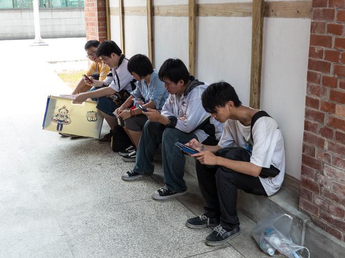 Keywords: Visitors Watching Smartphones after Event 20140705.jpg zh-tw 場後的遊客 場附近滑手機休息 Own 玄史生 2014-07-05 Seimon Chinjufu Sitting leaning forward People with mobile telephones 玄史生写 文庫 Taken with Leica V-Lux 4 Cc-zero