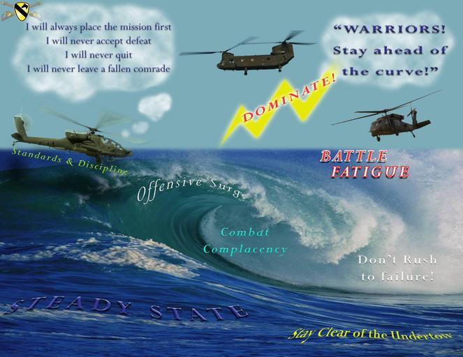 | Keywords: Visual aides aid Soldier safety DVIDS38762.jpg en The new safety poster used by the 1st Air Cavalry Brigade 1st Cavalry Division commissioned by Traverse City Mich native Col Dan Shanahan commander of the 1st ACB was created to provoke a deeper sense of safety in Soldiers Shanahan felt the old poster a graph with a curved line on it did not accurately represent the different aspects of risk and danger during the current deployment 2007-03-21 Staff Sgt Nathan Hoskins https //www dvidshub net/image/38762 38762 2007-03-21 09 28 TAJI IQ PD-USGov 1st Cavalry Division United States Images from DoD uploaded by Fæ |