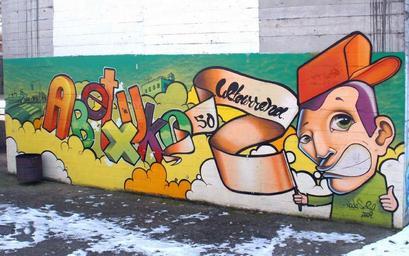 Keywords: Vitoria - Graffiti & Murals 0230.JPG en Graffiti en el Colegio Público del barrio de Abechuco en Vitoria-Gasteiz Imagen tomada el 28-12-2010 own Zarateman 2010-12-29 Cc-zero Graffiti in Vitoria-Gasteiz Murals in Vitoria-Gasteiz Nada Serio