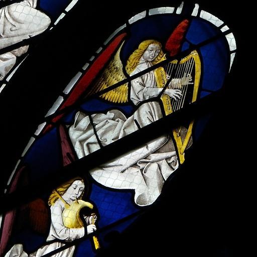 | Keywords: Vitrail Cathédrale de Moulins 160609 15.jpg fr Basilique-cathédrale Notre-Dame de l'Annonciation de Moulins; vitrail de la Vierge au trône fin du 15ème siècle Détail anges jouant de la lyre et de la cornemuse own Vassil 2009-06-18 Madonna and Child Enthroned with two donors stained-glass windows in Moulins cathedral Angels on stained glass windows in France Music-making angels on stained glass windows Musicians on stained glass windows | ||||
