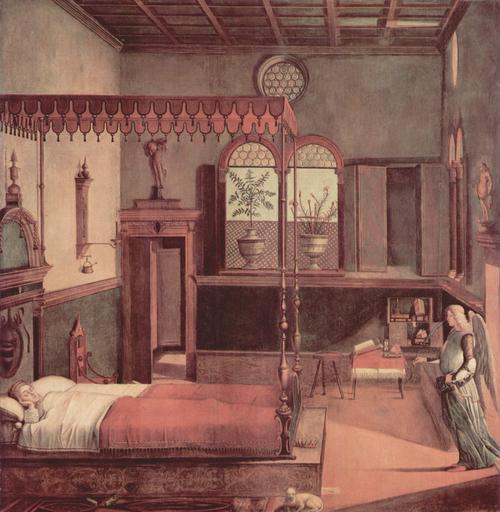 | Keywords: Vittore Carpaccio 050.jpg Artwork de Gemäldezyklus zur Legende der Hl Ursula Szene Der Traum der Heiligen Oil Canvas cm 274 267 de Venedig de Gallerie dell'Accademia de Gemäldekomplex bestehend aus 9 Werken Auftraggeber Scuola di Sant' Orsola in Venedig The Yorck Project 10 000 Meisterwerke der Malerei DVD-ROM 2002 ISBN 3936122202 Distributed by DIRECTMEDIA Publishing GmbH 1495 Creator Vittore Carpaccio http //mail wikipedia org/pipermail/wikide-l/2005-April/012195 html Other versions PD-old-100 PD-Art-YorckProject Dream of Saint Ursula by Carpaccio |