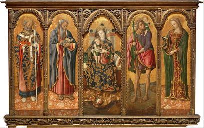 | Keywords: Vittore Crivelli - Madonna and Child with Saints - Google Art Project.jpg non-free frame ~ 1480 Around 1440 Venice Italy 1440 1501/02 Venice Italy 1501 Male 681260 Italian Around 1440 - 1501/02 /collection/the-pushkin-state-museum-of-fine-arts-moscow/artwork/madonna-and-child-with-saints-vittore-crivelli/676284/ Vittore Crivelli painter /artist/vittore-crivelli/4128562/ 4128562 /collection/the-pushkin-state-museum-of-fine-arts-moscow/ The Pushkin State Museum of Fine Arts Moscow 393002 http //www arts-museum ru/ 1/12/2012 11 36 33 AM /collection/the-pushkin-state-museum-of-fine-arts-moscow/artwork/madonna-and-child-with-saints-vittore-crivelli/676284/ 1480 Around 1480 True 340 676284 True 1481 /collection/the-pushkin-state-museum-of-fine-arts-moscow/level/ground-floor/689024/ Ground floor 3/24/2012 8 08 04 AM Inv 212 http //www italian-art ru/canvas/15-16_century/c/crivelli_vittore/madonna_and_child_with_saints php lang en polyptych 1480 1490 w1050 x h340 cm Around 1480 False 1 59006211180124 Object /collection/the-pushkin-state-museum-of-fine-arts-moscow/level/ground-floor/689024/room-7-byzantine-art-italian-art-of-the-13th-to-16th-centuries/681274/ Room 7 Byzantine Art Italian Art of the 13th to 16th centuries madonna-and-child-with-saints-vittore-crivelli Madonna and Child with Saints m 1050 special url_id 7wELxXqRpHg8KA PD-old-100-1923 1501 Vittorio Crivelli Google Art Project works by Vittore Crivelli Italian Gothic paintings in the Pushkin Museum |