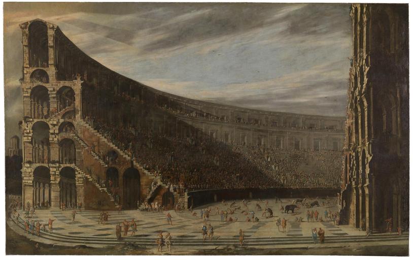 | Keywords: Viviano Codazzi and Domenico Gargiulo - Perspectival View of a Roman Amphitheatre.jpg Artwork Creator Viviano Codazzi and Creator Domenico Gargiulo ca 1638 Oil on canvas size cm 220 5 352 7 Institution Museo del Prado object history credit line accession number https //www museodelprado es/en/the-collection/art-work/perspectival-view-of-a-roman-amphitheatre/bd4264e9-07f5-4728-b491-bdfdaaa28c21 Prado Museum PD-old-100 painting landscape Italian 1601-1650 Viviano Codazzi Domenico Gargiulo 17th-century images of Rome 1630 Ancient Roman amphitheatres Italy in the 1630s 1630 paintings in Spain 17th-century paintings from Spain Italian paintings in the Museo del Prado Codazzi |