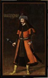 | Keywords: Vlad tepes painting.jpg Lebensgroßes Bildnis aus der Esterházy ˜schen Ahnengalerie von Burg Forchtenstein/Burgenland 17 Jahrhundert Öl auf Leinwand 218 x 130 cm Painting at Esterházy Castle century 17 anonymous PD-Old Vlad III the Impaler in paintings |