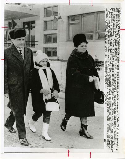 Keywords: smithsonian institution smithsonianinstitution cosmonaut family man woman girl child space manned flight 1960s sixties smithsonian institution archives smithsonianinstitutionarchives women's history month womenshistorymonth women in science womeninscience 2011 20th century - mid 20thcenturymid astronomics government groupshot people blackandwhite black and white Creator: United Press International Subject: Komarov, Vladimir Mikhailovich 1927-1967        Komarov, Valentina Type: Black-and-White Prints Topic: Astronauts Local number: SIA Acc. 90-105 [SIA-SIA2008-4943] Summary: Soviet cosmonaut Vladimir Mikhaylovich Komarov (1927-1967) and his wife Valentina Komarov, and their daughter Irina, 1967. Komarov was killed while trying to land his spacecraft on April 24, 1967. Cite as: Acc. 90-105 - Science Service, Records, 1920s-1970s, Smithsonian Institution Archives Persistent URL:Link to data base record Repository:Smithsonian Institution Archives View more collections from the Smithsonian Institution. Creator: United Press International Subject: Komarov, Vladimir Mikhailovich 1927-1967 Komarov, Valentina Type: Black-and-White Prints Topic: Astronauts Local number: SIA Acc. 90-105 [SIA-SIA2008-4943] Summary: Soviet cosmonaut Vladimir Mikhaylovich Komarov (1927-1967) and his wife Valentina Komarov, and their daughter Irina, 1967. Komarov was killed while trying to land his spacecraft on April 24, 1967. Cite as: Acc. 90-105 - Science Service, Records, 1920s-1970s, Smithsonian Institution Archives Persistent URL:Link to data base record Repository:Smithsonian Institution Archives View more collections from the Smithsonian Institution. |