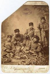 Keywords: Vladimir Serafimov (sitting with a scarf over the head) with other soldiers from the Serbo-Bulgarian War.jpg en Vladimir Serafimov sitting with a scarf over the head with other soldiers from the Serbo-Bulgarian War 1885 scanned Creator Dimitar Karastoyanov other versions Custom license marker 2016 01 30 PD-old Vladimir Serafimov Photographs by Dimitar Karastoyanov |