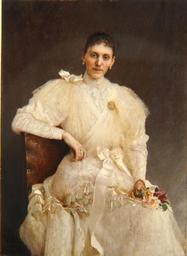 | Keywords: Vlaho Bukovac - Portret žene v beli obleki.jpg  Artwork creator Vlaho Bukovac 1894 oil canvas cm 130 5 94 5 Institution National Gallery of Slovenia 907 PD-old-auto 1922 Paintings by Vlaho Bukovac 1894 paintings in Slovenia 19th-century paintings in the National Gallery of Slovenia 19th-century portrait paintings in Slovenia 19th-century oil on canvas paintings in Slovenia 19th-century oil portraits of sitting women at three-quarter length 1894 oil on canvas paintings 1894 portrait paintings Females with white dresses in art |