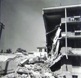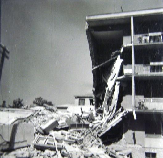| Keywords: Voena stanbena zgrada na agol Leninova i IR Lola.jpg mk Земјот есот во Скопје од 1963 година Воена станбена зг ада на аголот меѓу Ленинова и Иво Риба Лола en 1963 Skopje earthquake Military apartment building on the corner of the streets Leninova and Ivo Lola Ribar DARM archive 1963-07-26 The State Archives of the Republic of Macedonia DARM Skopje Department author other versions Custom license marker 2016 05 20 Anonymous-EU Wikipedian in Residence at DARM 1963 Skopje earthquake | ||||